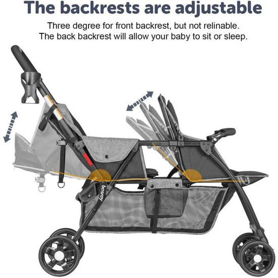 besrey Poussette double légère avec sièges réglables, roues amortisseurs et housse de pluie