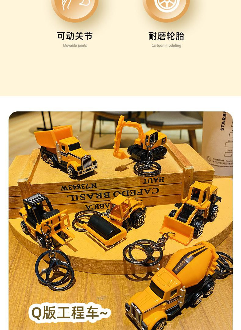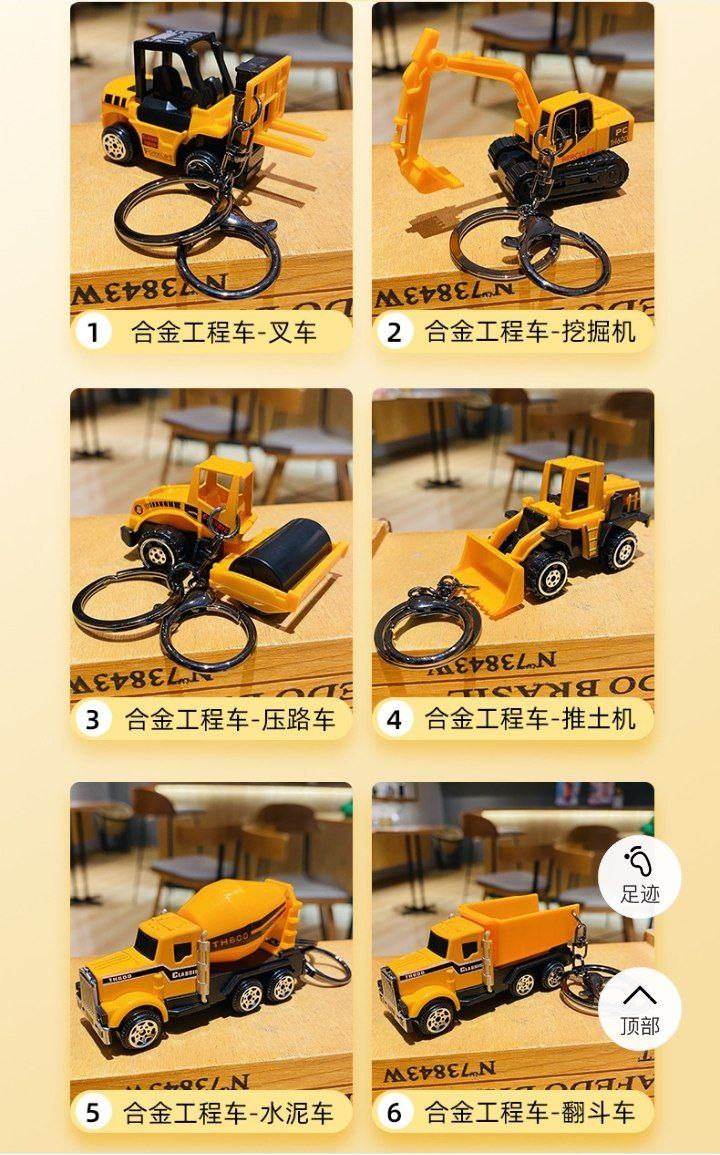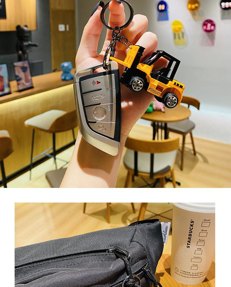 Porte-clés d'excavatrice de véhicule d'ingénierie en alliage de dessin animé créatif, pendentif de sac exquis et mignon, petits cadeaux pour les couples