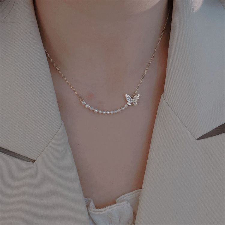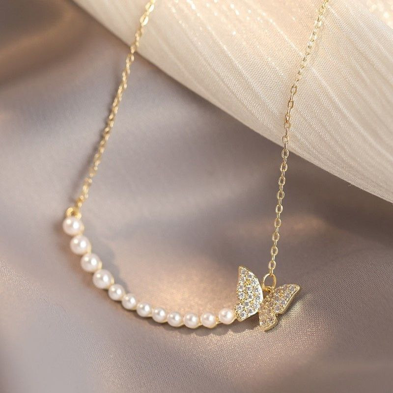 Nouveau collier papillon de perles pour femmes, design de luxe léger, personnalité haut de gamme, tempérament polyvalent, chaîne de clavicule
