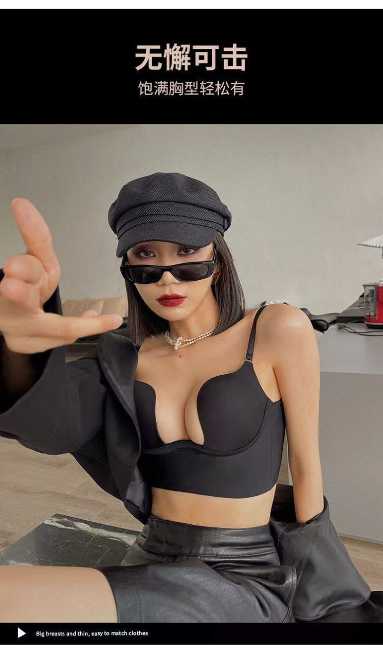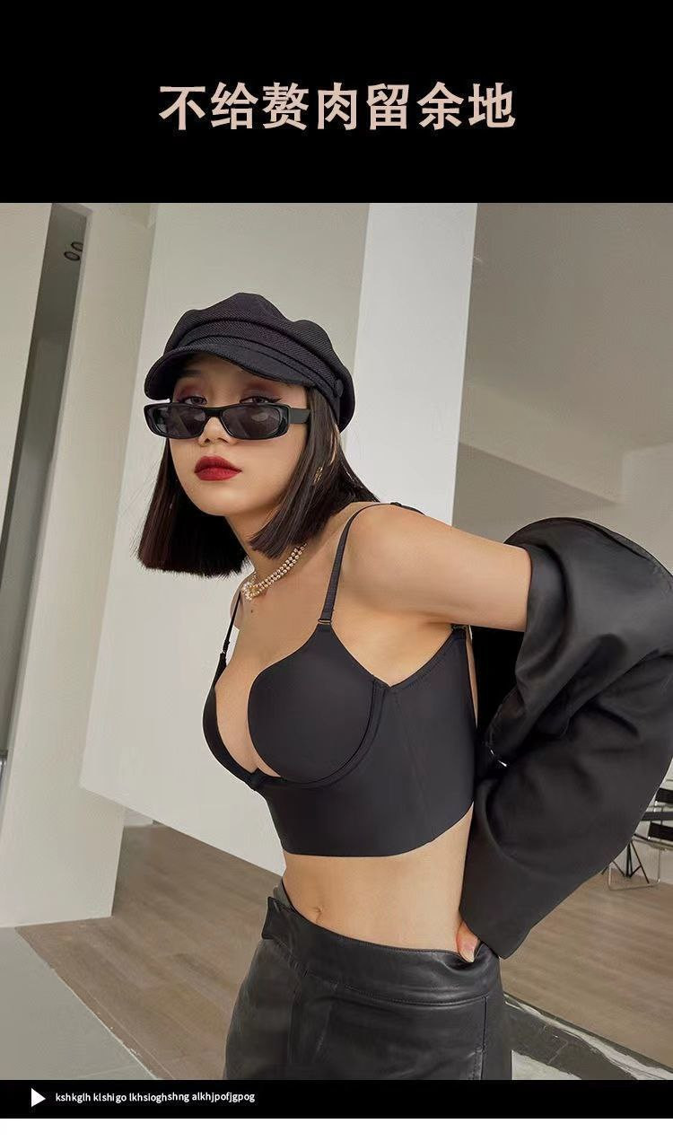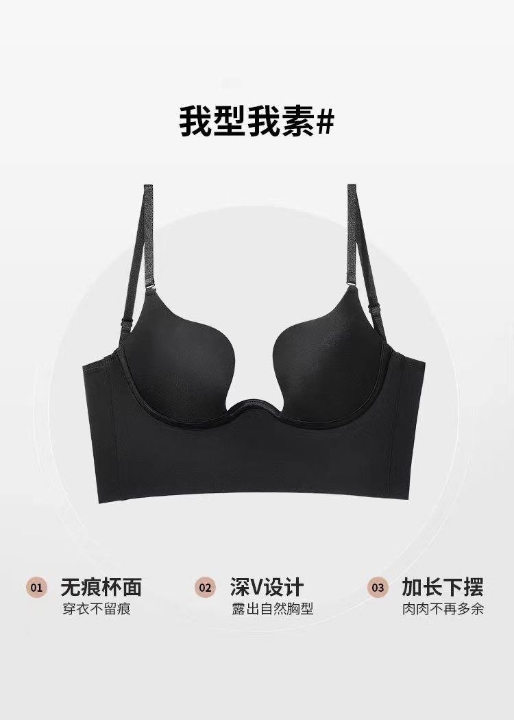 Grand soutien-gorge dos nu en forme de U pour femme en été avec petits seins froncés soutien-gorge sans couture avec seins latéraux soutien-gorge sexy en V profond