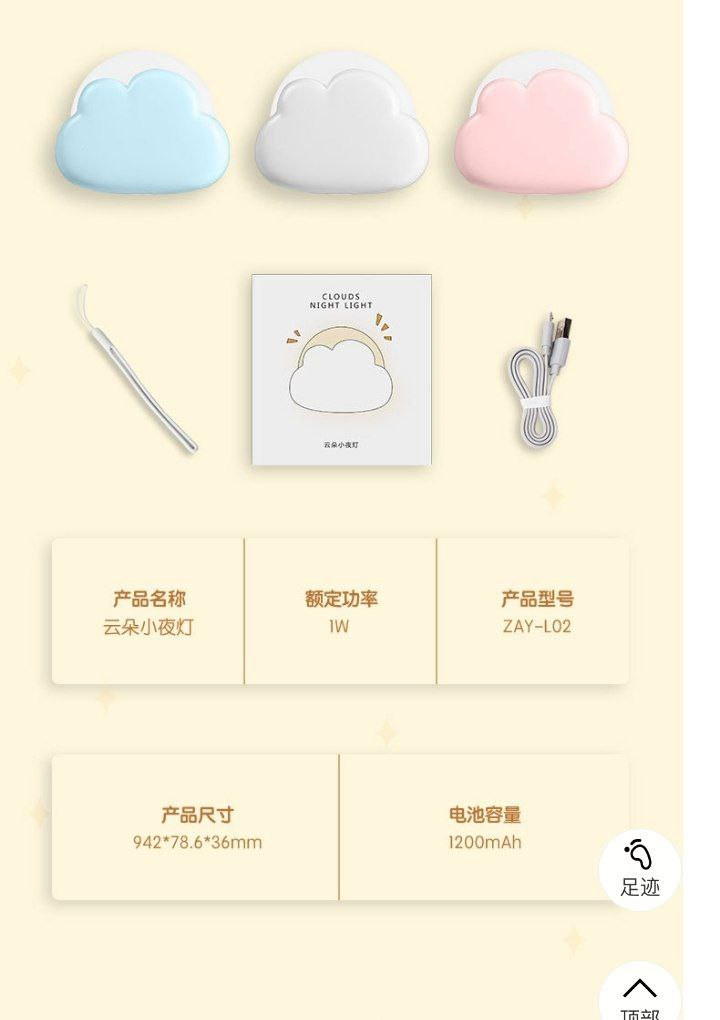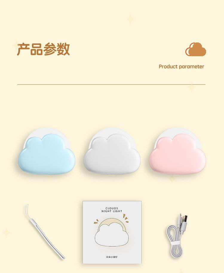 Nouveau nuage Rechargeable veilleuse filles chambre lampe de chevet filles mignon bébé allaitement et sommeil veilleuse 1W