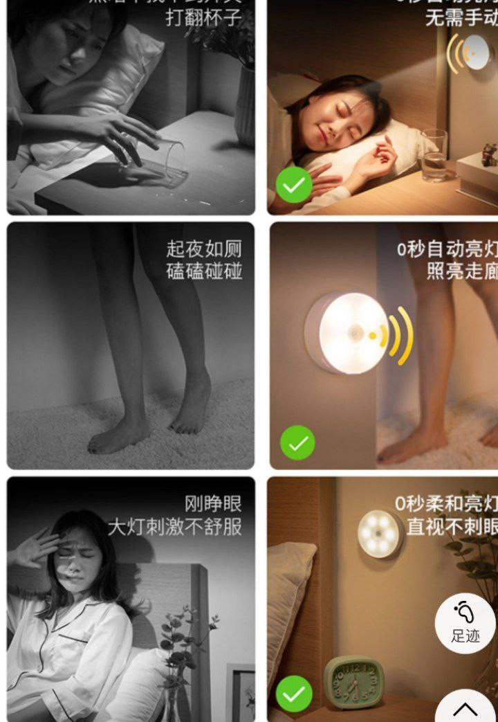 Veilleuse lumière de capteur de corps humain veilleuse  de contrôle de la lumière LED charge maison garde-robe allée escalier veilleuse sans fil