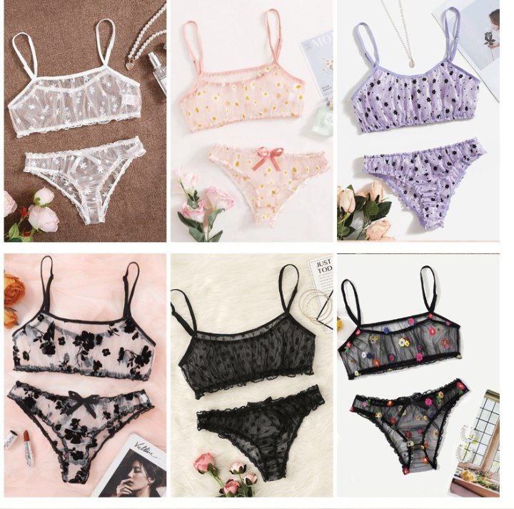 Lingerie sexy Été nouvel ensemble de lingerie sexy transparent floqué maille multicolore tentante pour les femmes