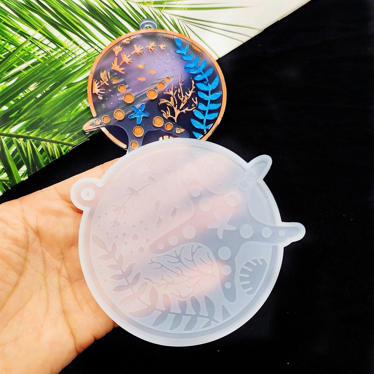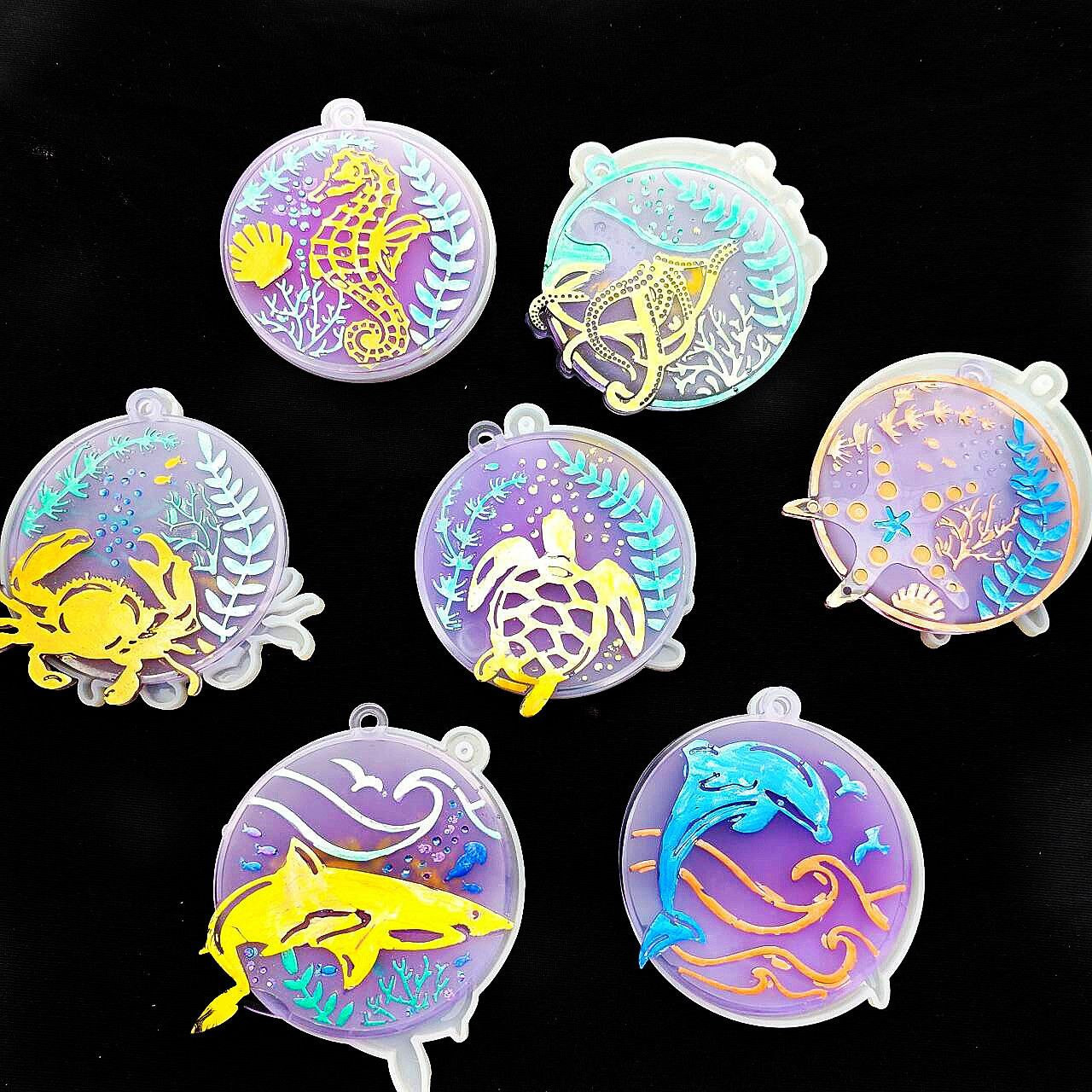 DIY7 – moule à colle pour étiquette ronde marine, étoile de mer, hippocampe, tortue de mer, étoile de mer et autres animaux marins, moule à pendentif