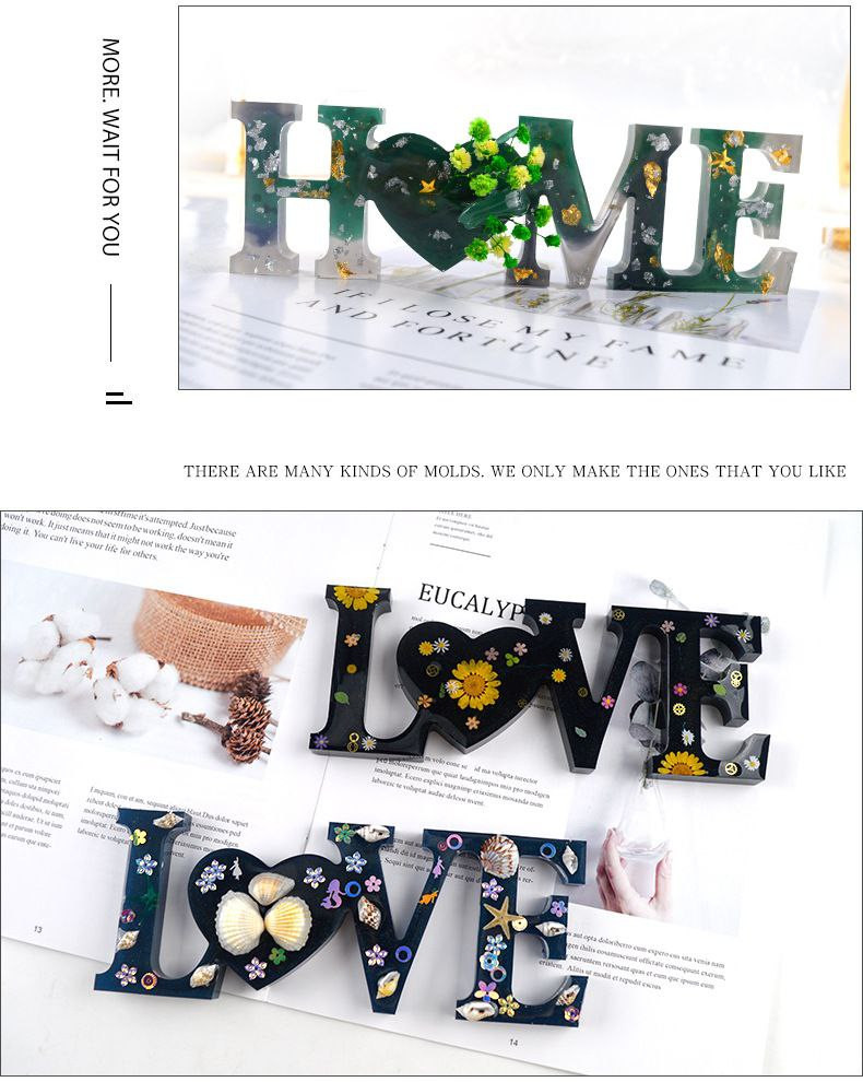 Moule à lettres, moule à colle, bijoux à bricoler soi-même, ornements en résine, ensemble d'outils abrasifs anglais, moule en silicone pour mots d'amour