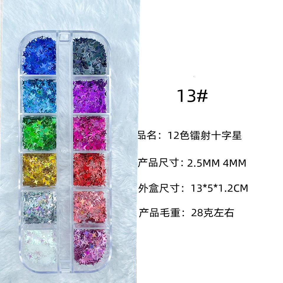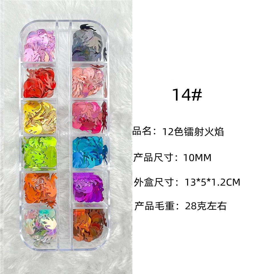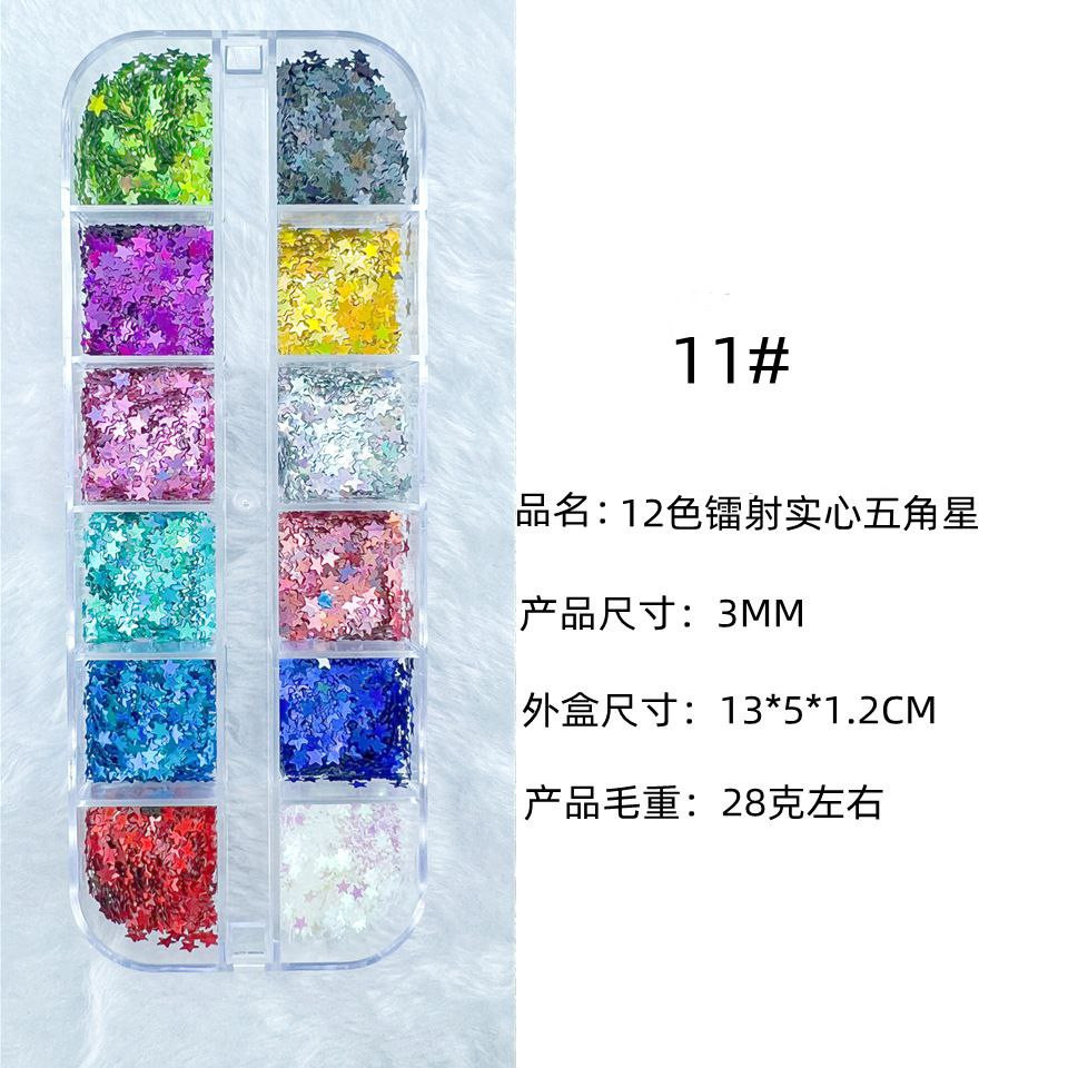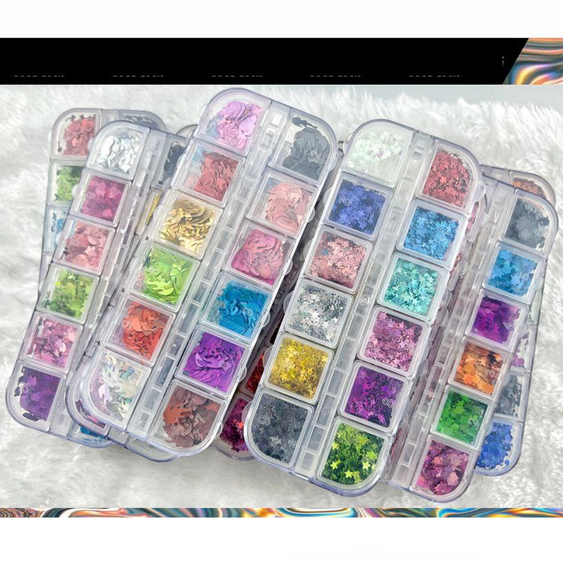 Manucure 12 cadres laser fins paillettes de forme spéciale papillon étoile à cinq branches parapluie feuille d'érable 20 accessoires pour ongles rose pailleté