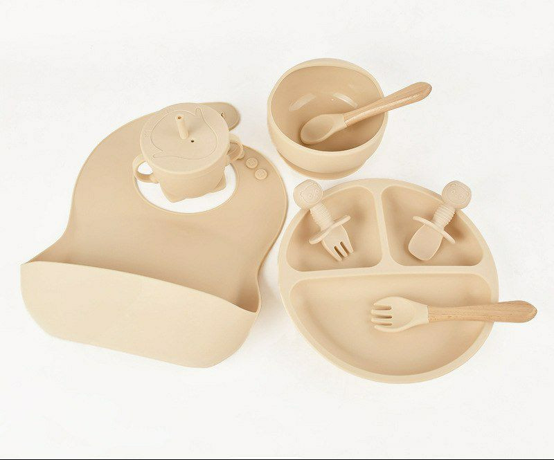 Assiette d'alimentation en silicone pour enfants, lot de 8pieces, pour bebe, bol, tasse, couvert vaisselle pour sevrage et apprentissage a manger