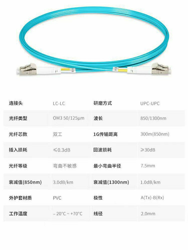 Fibre optique télécom Grade OM3 10 000 Gigabit Fibre multimode Fibre optique LC-LC Connector de connecteur optique à fibre monomode SC / FC / LC
