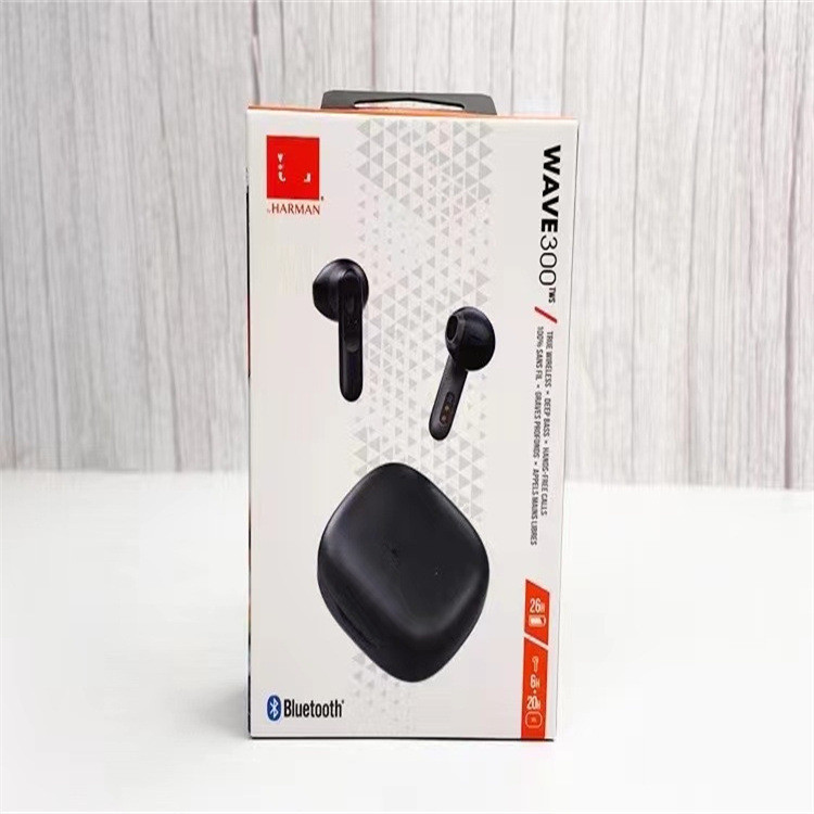 Ecouteurs Bluetooth JBL WAVE300 sans fil avec fonction anti-bruit, conçus pour les sports et les appels téléphoniques, et adaptés à la musique