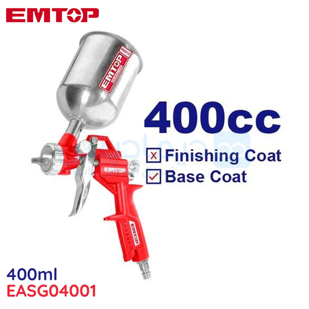 ComOne: Pistolet Mécanique 400CC EMTOP. Le pistolet à compresseur peut s'utiliser avec tous les types de peinture. On l'emploie essentiellement pour la mise en peinture de large surface, même si on peut l'utiliser pour peindre des surfaces plus réduites. Il sert également à la peinture des carrosseries automobiles